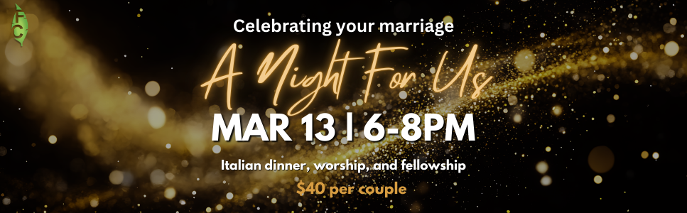 "A Night For Us" is a night for YOU! This event is a date night at the church created to celebrate your marriage. Get dressed up and enjoy a delicious Italian dinner, live worship, and meaningful fellowship with other couples.